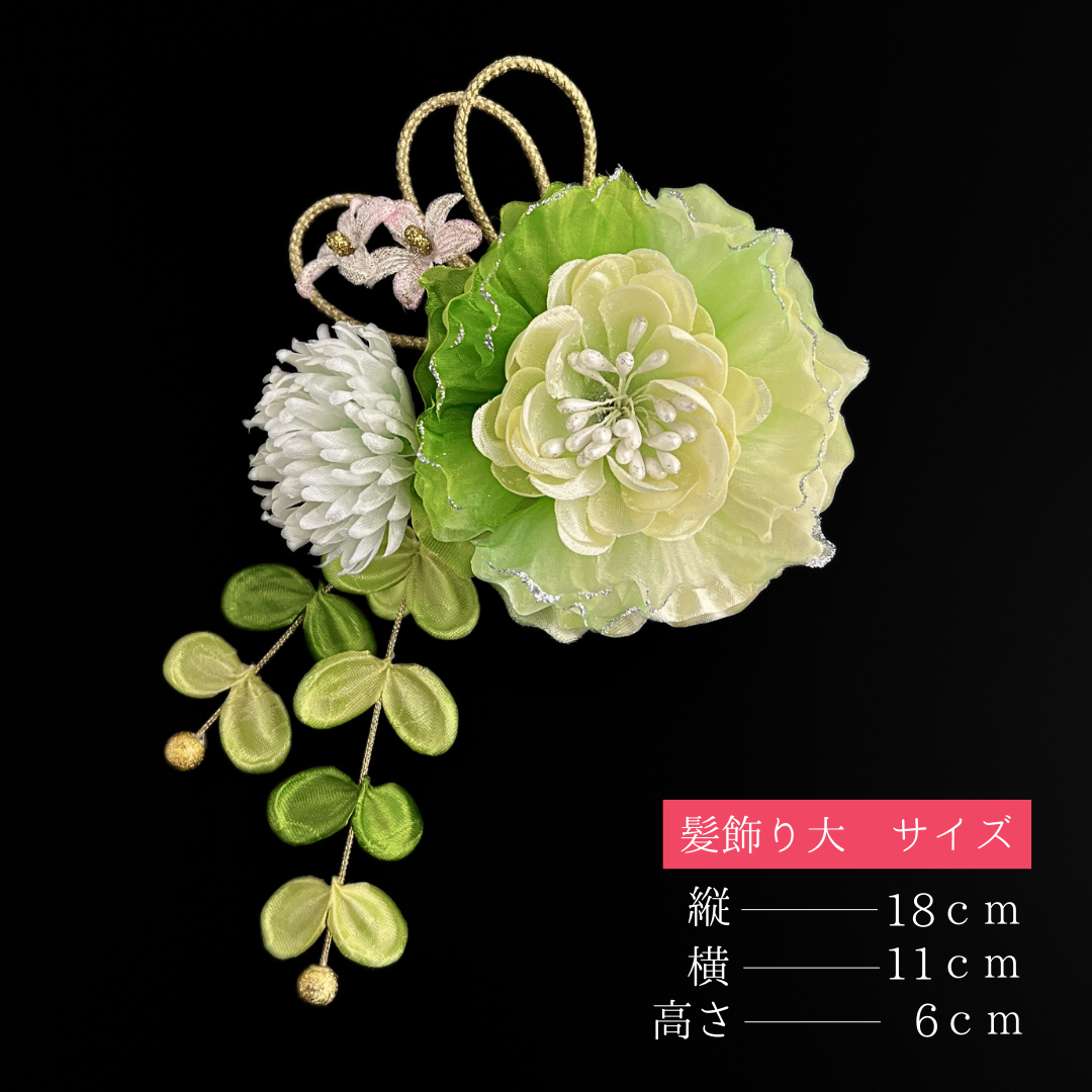 髪飾り大:縦約18cm×横約11cm×高さ約6cm(コーム仕様)