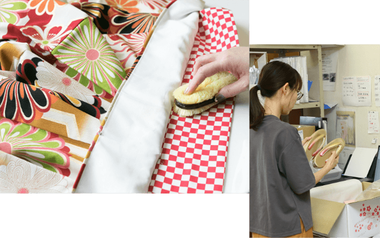 草履やバッグ、着付けの小物など必要な物は全て揃った安心セット!