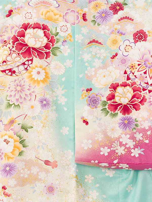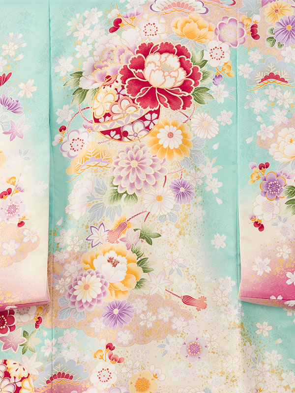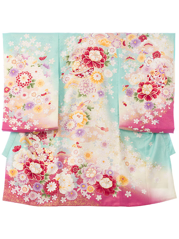 女児産着|お宮参り着物|化繊|赤ちゃん着物|レンタル|水色系|#HAMA099