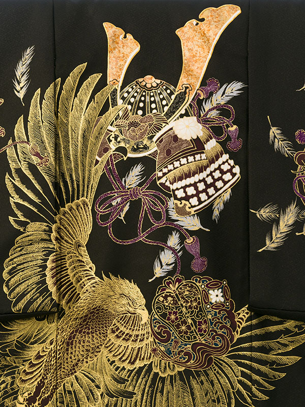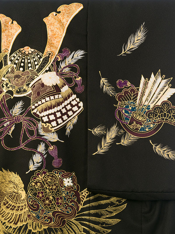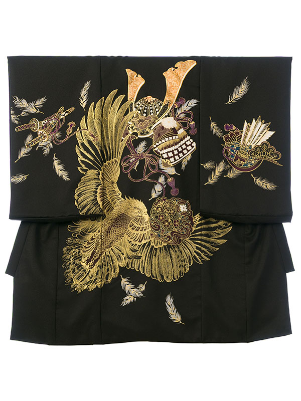 男児産着|お宮参り着物|黒系|赤ちゃん着物|鷹に兜|#HALA139
