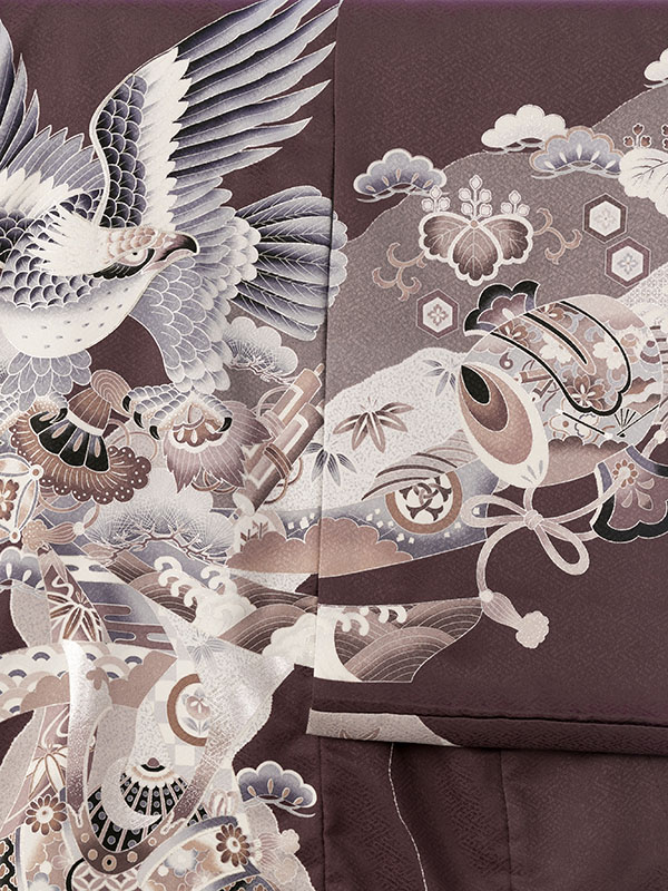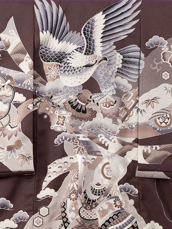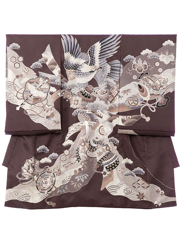 男児産着|お宮参り着物|茶系|赤ちゃん着物|鷹|#HALA173
