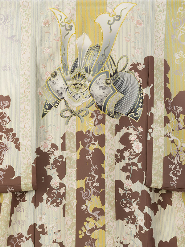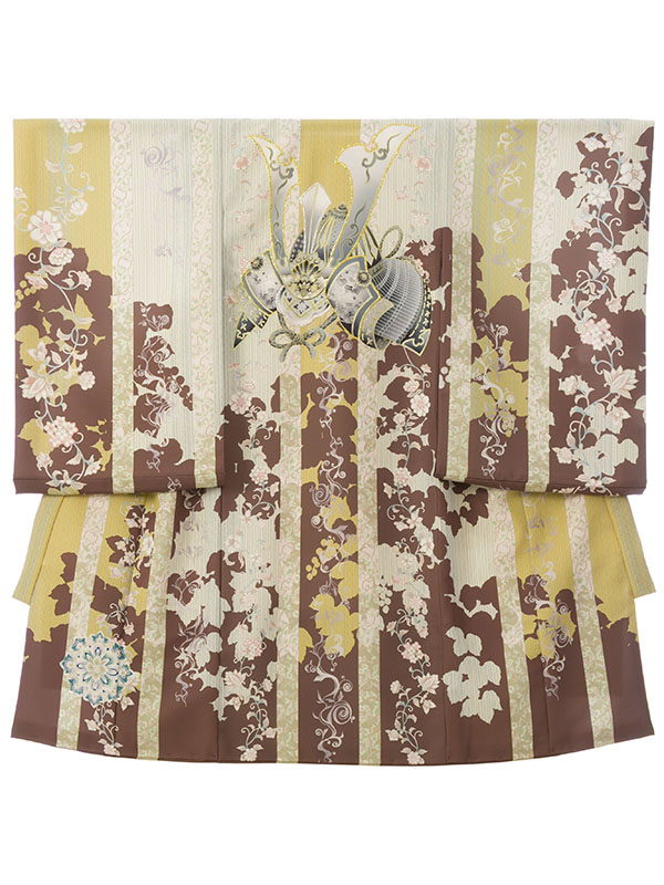 男児産着|お宮参り着物|茶系|赤ちゃん着物|兜|#HALA172