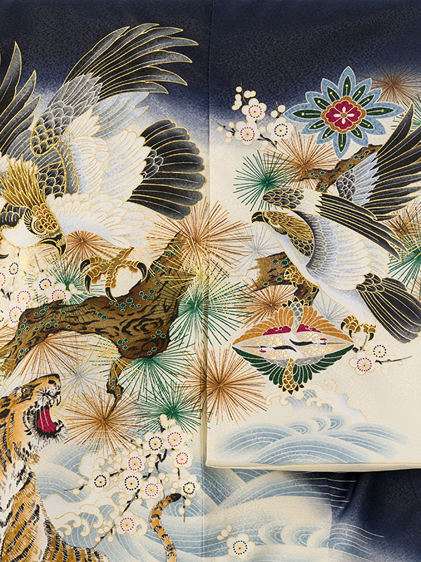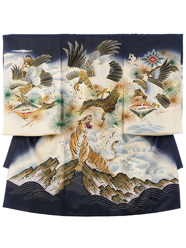 男児産着|お宮参り着物|青系|赤ちゃん着物|虎|#HALA168