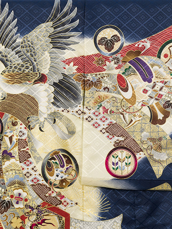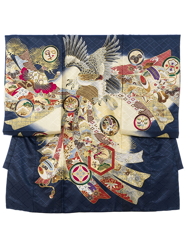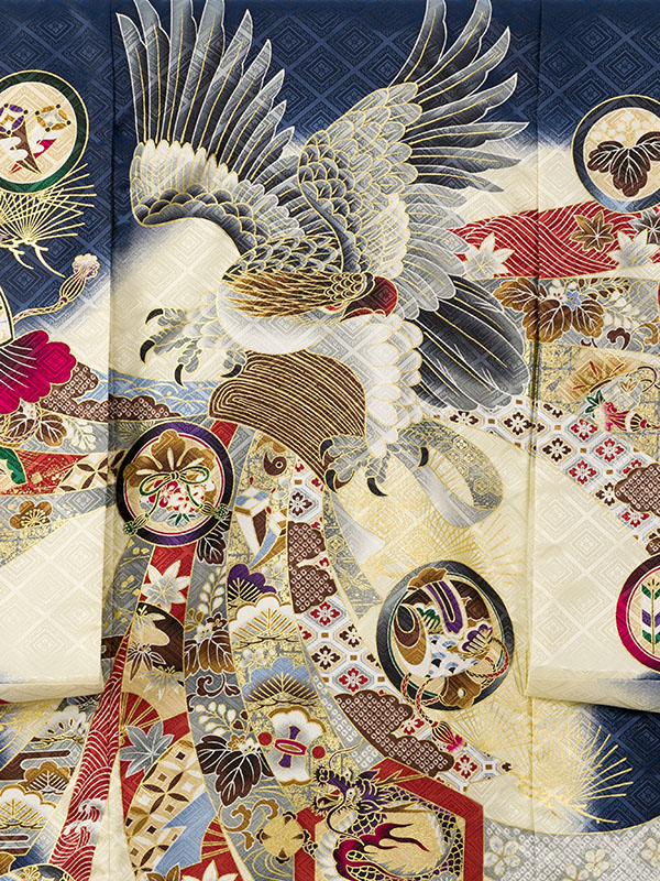男児産着|お宮参り着物|青系|赤ちゃん着物|鷹|#HALA145