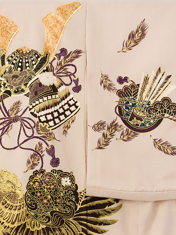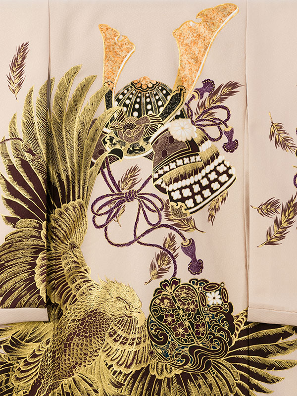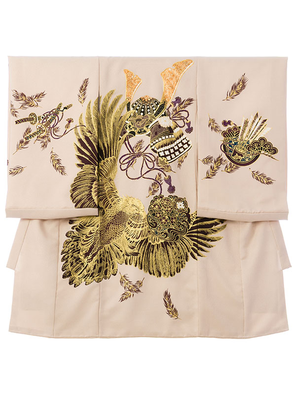 男児産着|お宮参り着物|ベージュ系|鷹|赤ちゃん着物|#HALA169