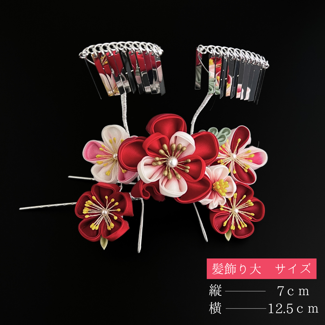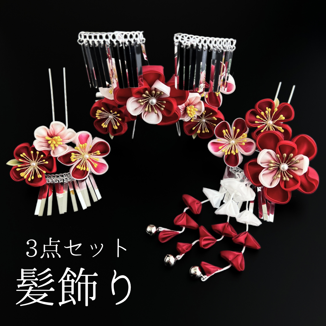七五三 髪飾り 日本髪|赤 花 髪飾り 3点セット|HCJA493