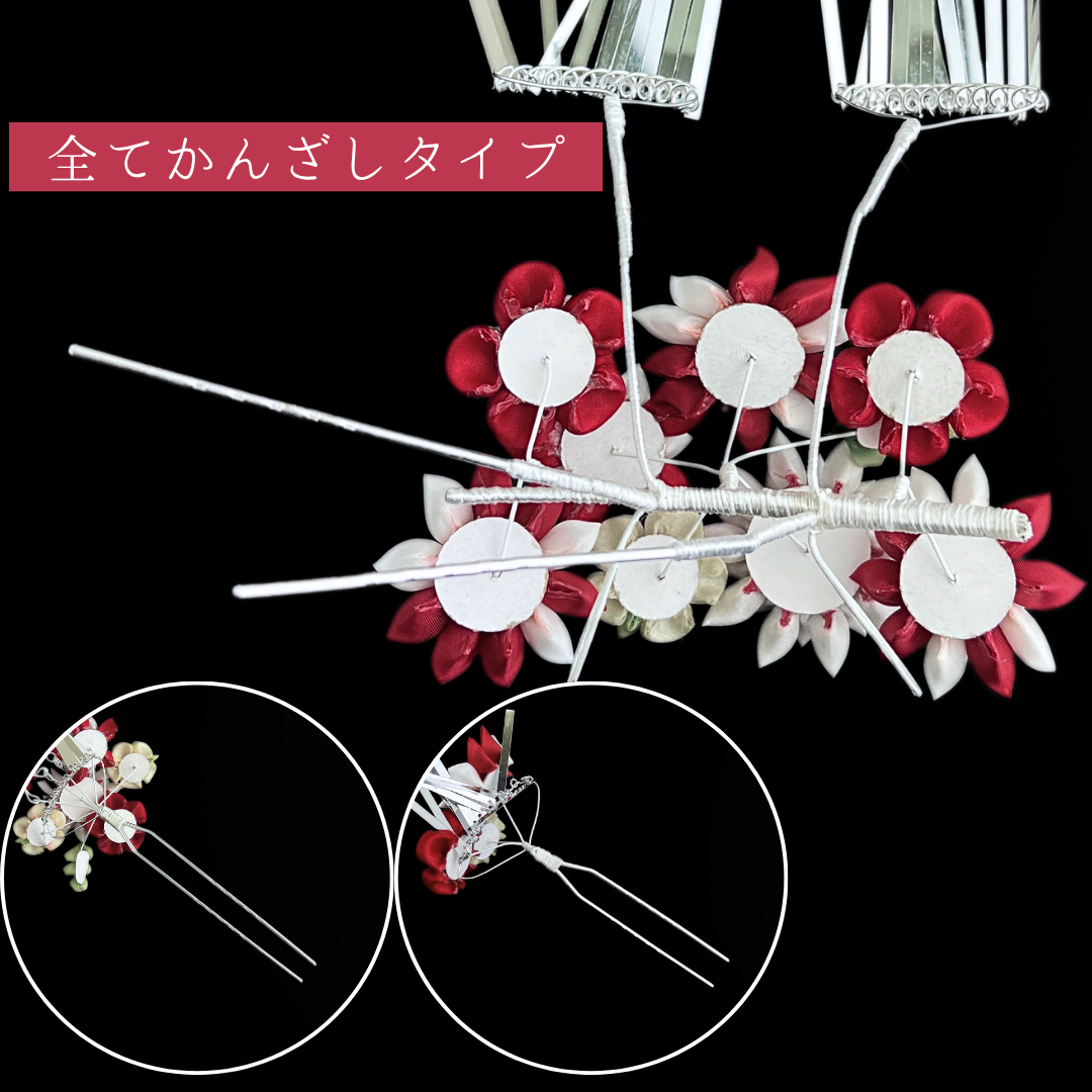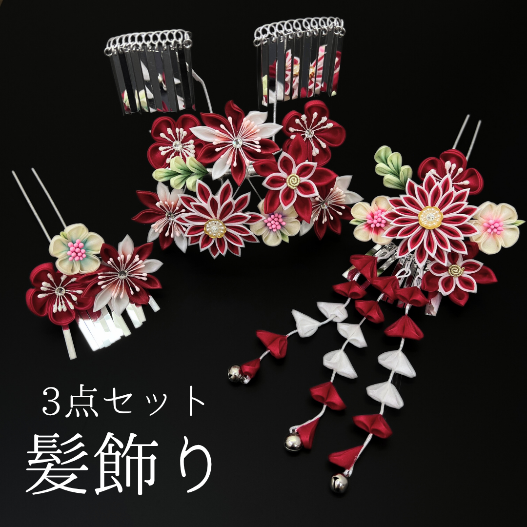 七五三 髪飾り 日本髪|赤 花 髪飾り 3点セット|HCJA494