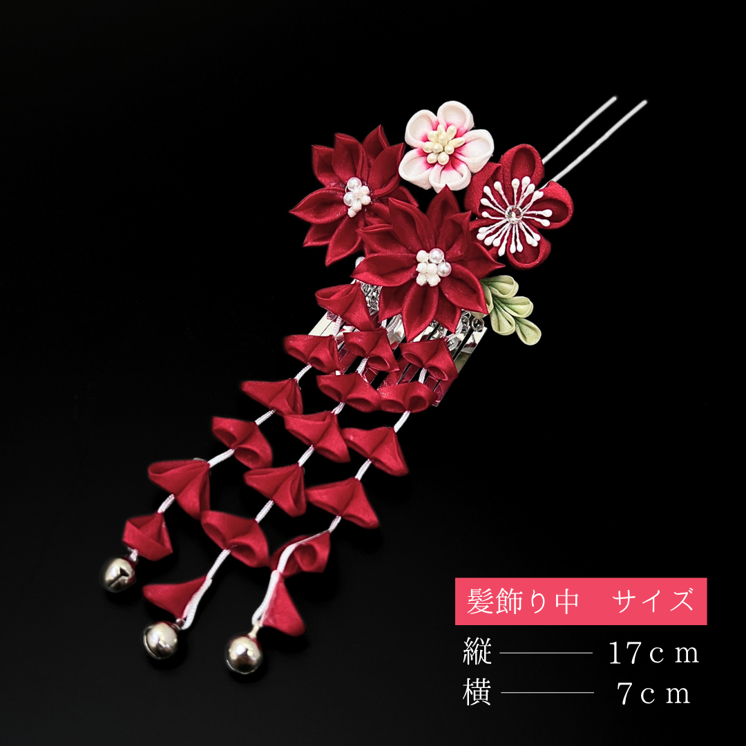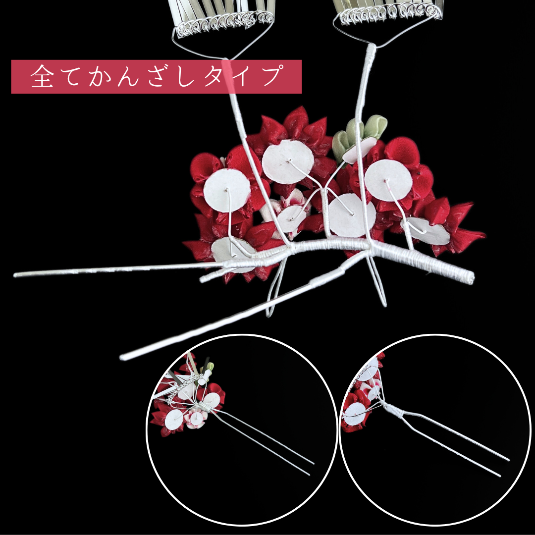 七五三 髪飾り 日本髪|赤 花 髪飾り 3点セット|HCJA501