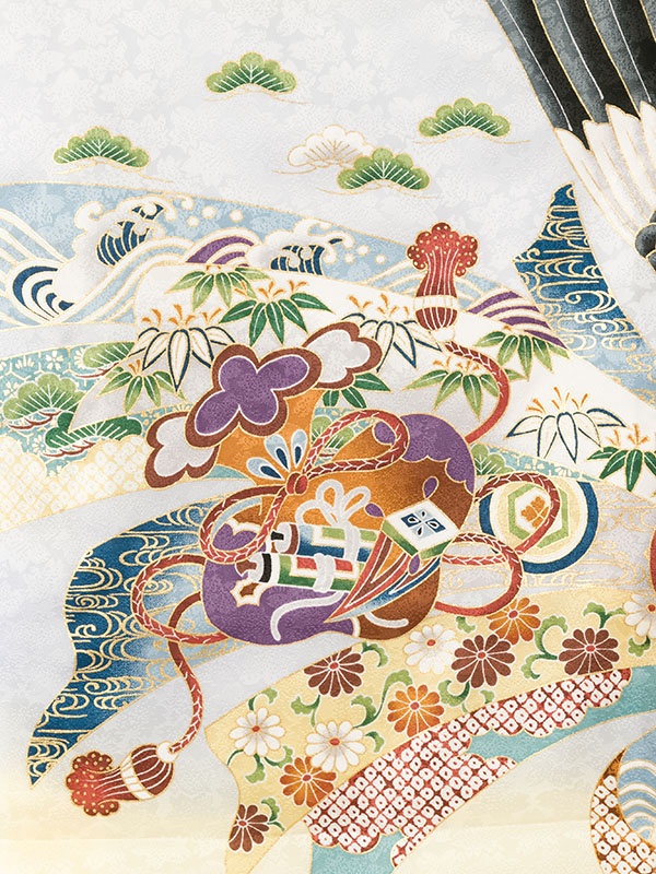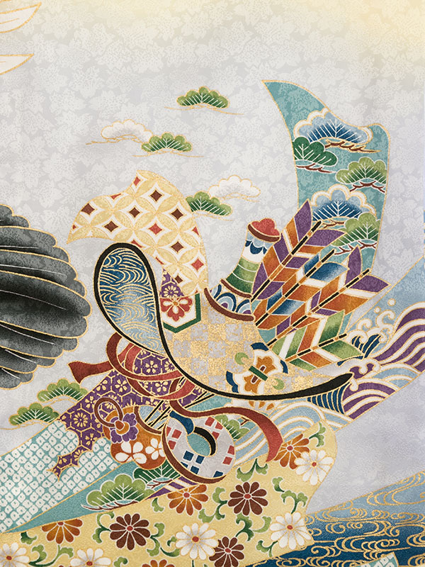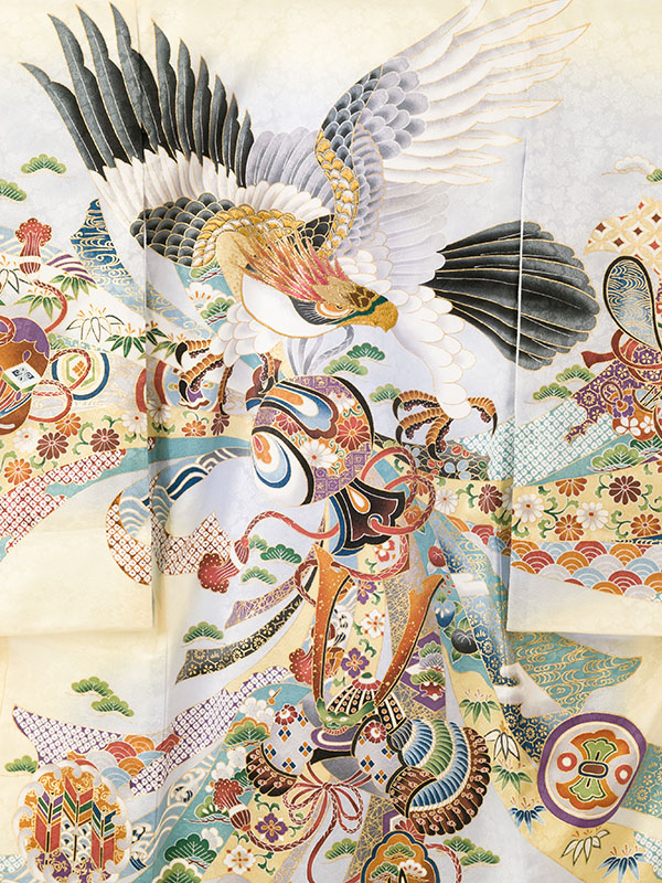 クリームイエロー地 鷹に小槌 兜 束ね熨斗