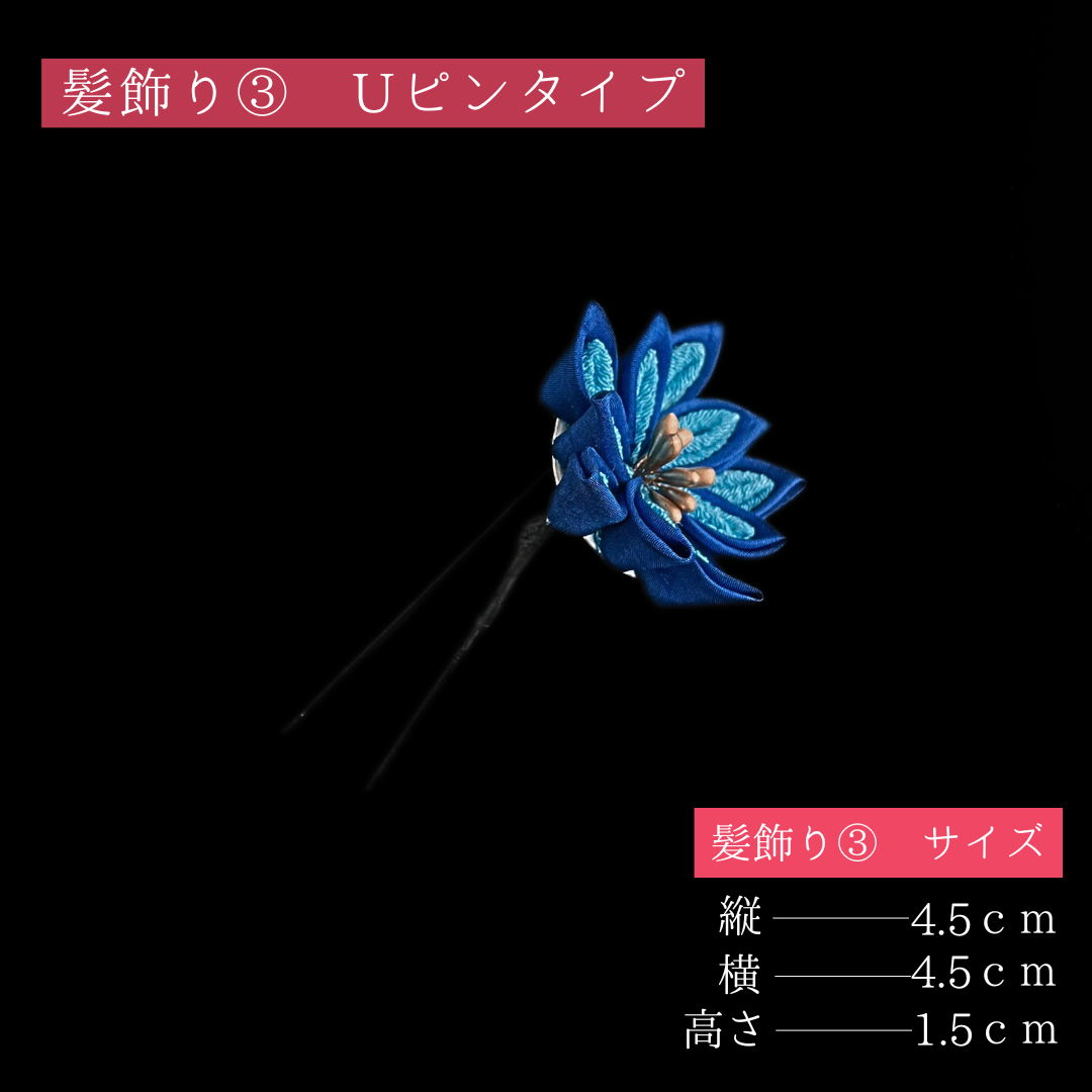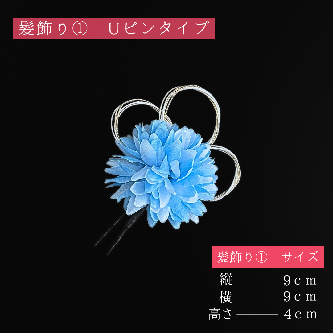 水色から青色までのグラデーションが美しい、爽やかで品のある髪飾り。