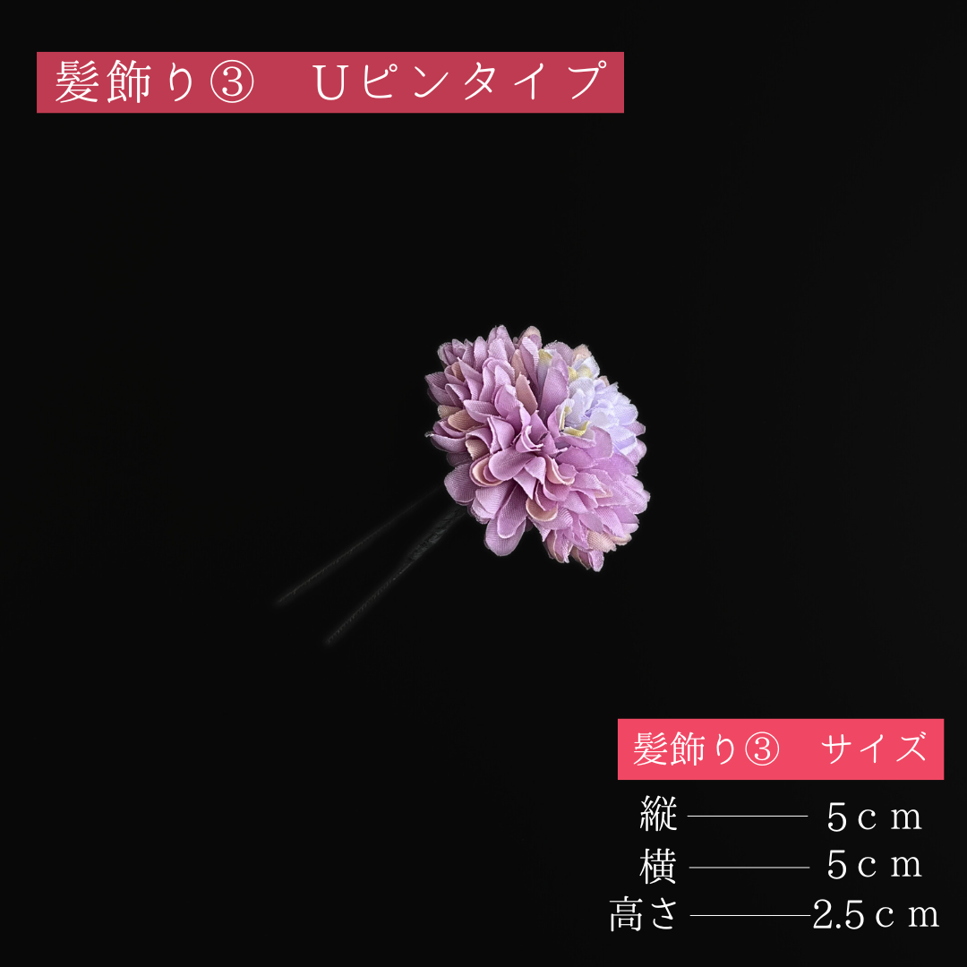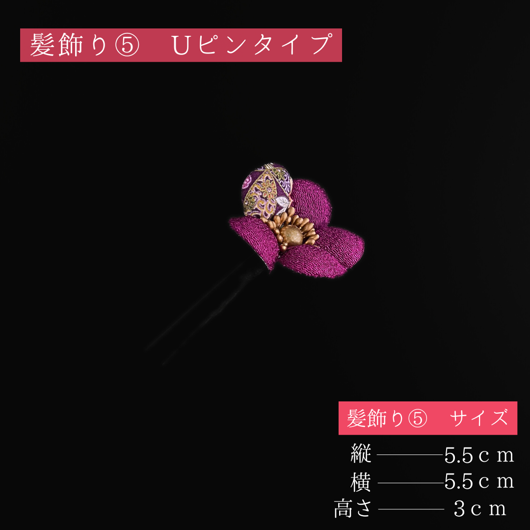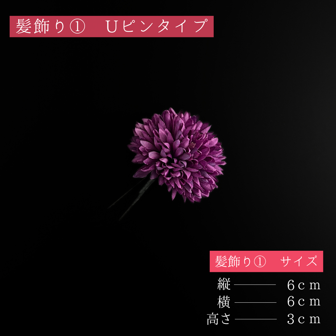 深みのある紫を基調に、赤・白・淡紫のお花がぎゅっとつまった豪華な髪飾りセット。
