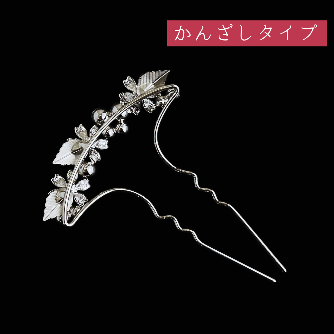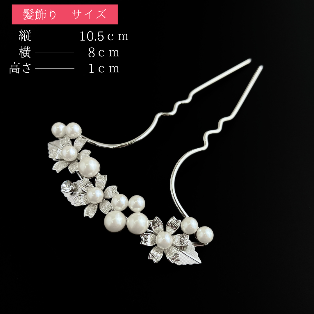 シャープなシルバートーンにパールを組み合わせた、上品でスタイリッシュな簪です。