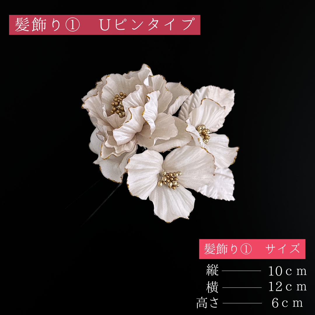 髪飾り①(Uピン式):縦約10cm×横約12cm×高さ約6cm