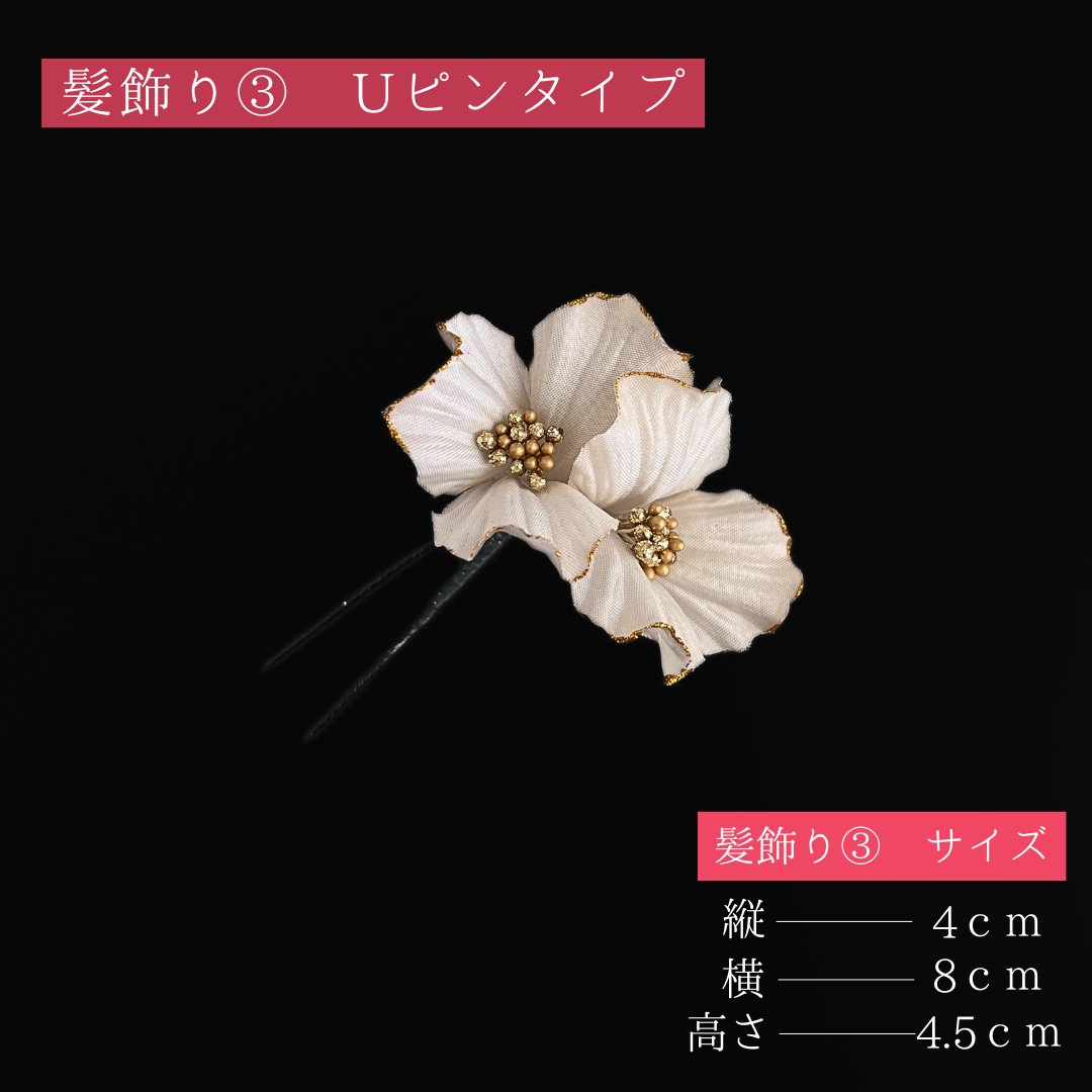 髪飾り③(Uピン式):縦約4cm×横約8cm×高さ約4.5cm