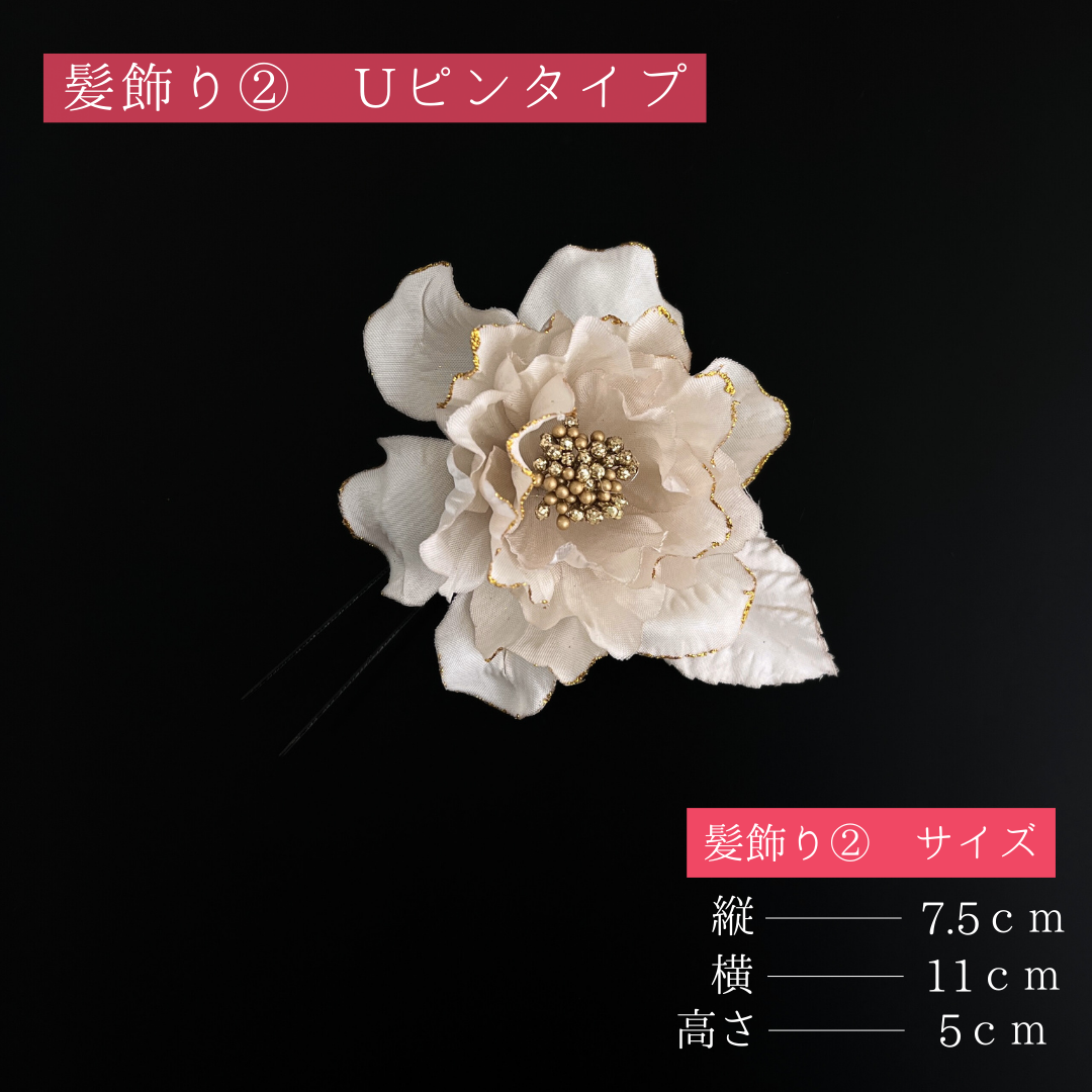 髪飾り②(Uピン式):縦約7.5cm×横約11cm×高さ約5cm