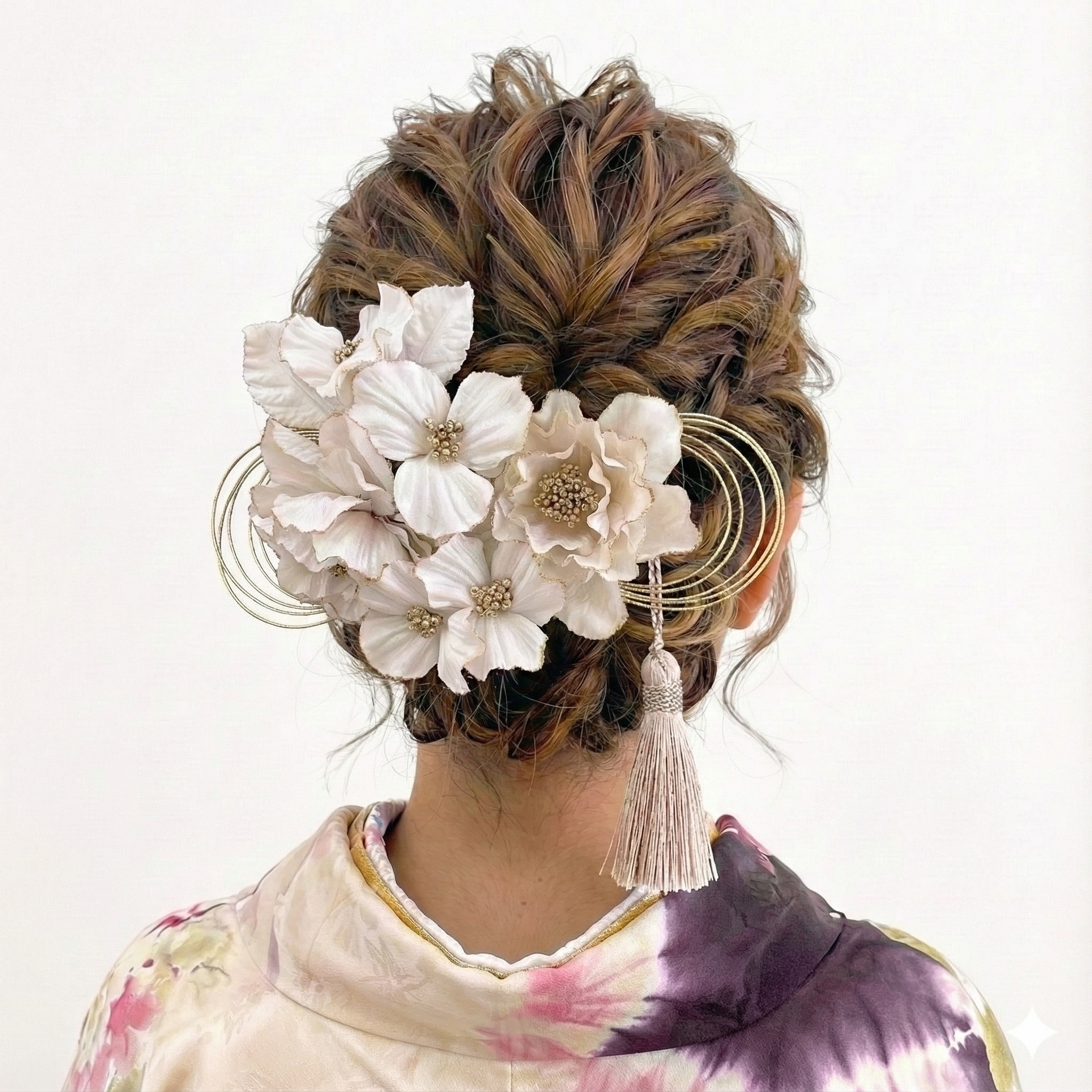 柔らかな房飾りがアクセントになり、和装にも洋風アレンジにも馴染む万能デザイン。