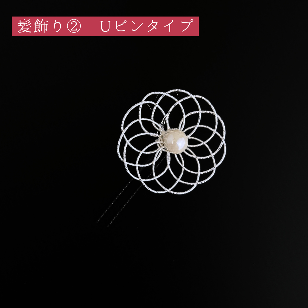 髪飾り②(Uピン式):縦約4.5cm×横約4.5cm×高さ約1.5cm