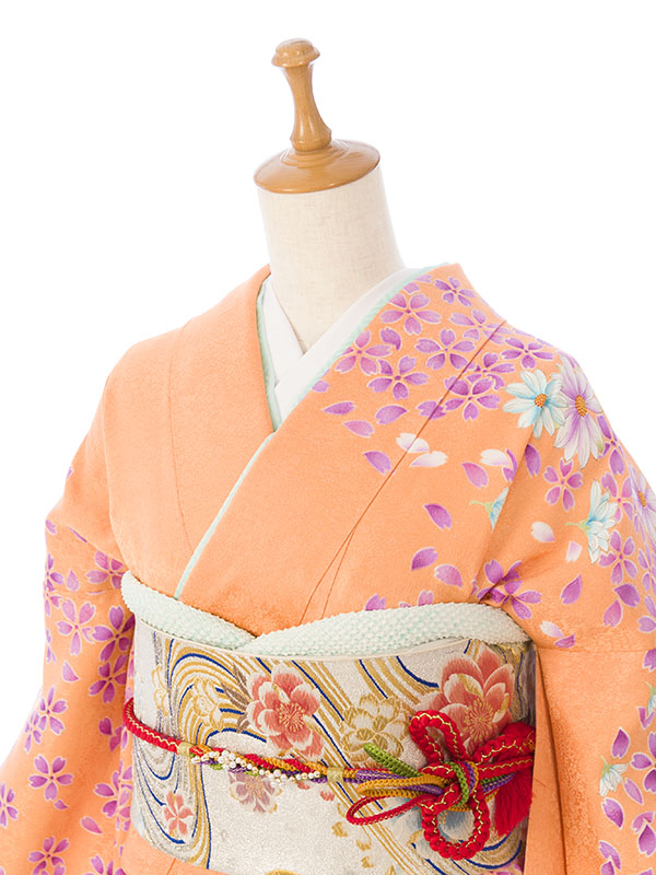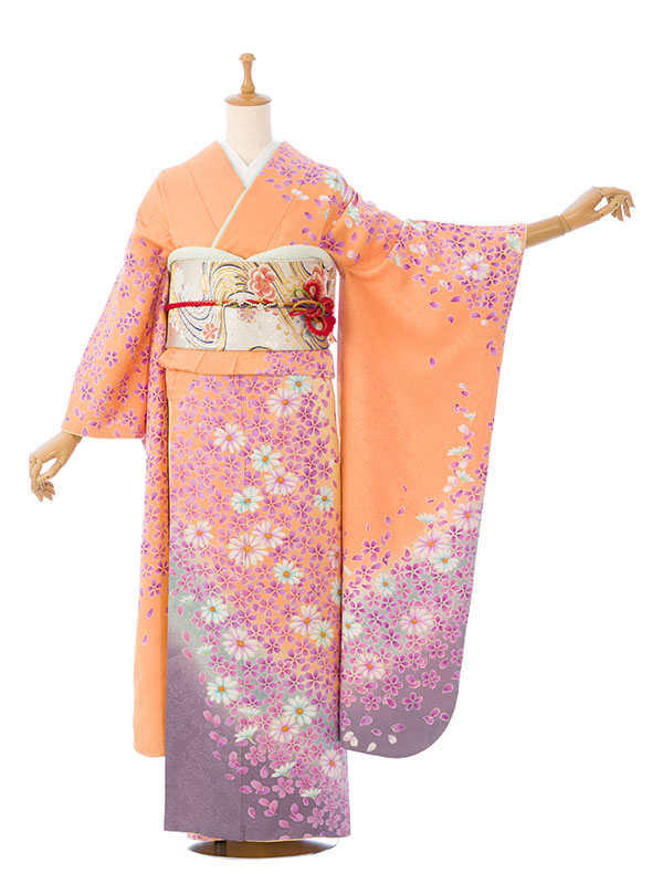 振袖|オレンジ系|桜|5S780|対応身長:150-160cm|サイズ:7号-13号