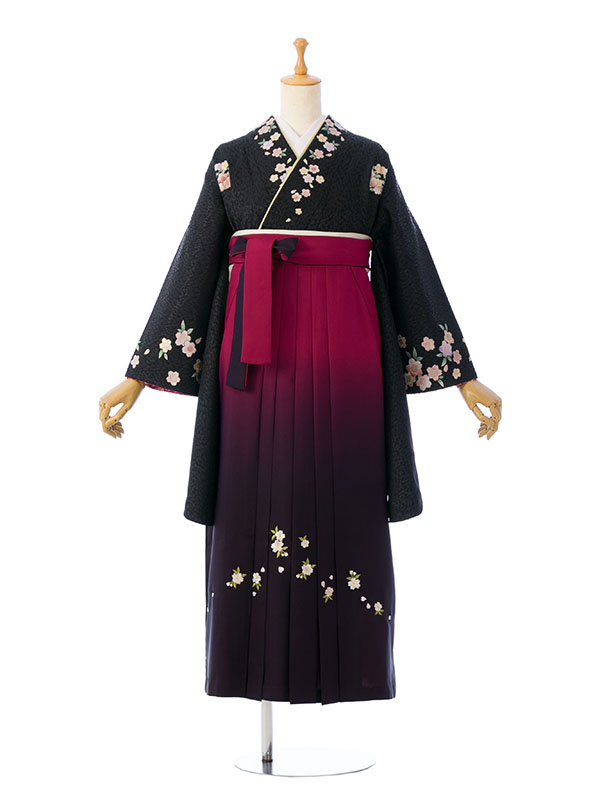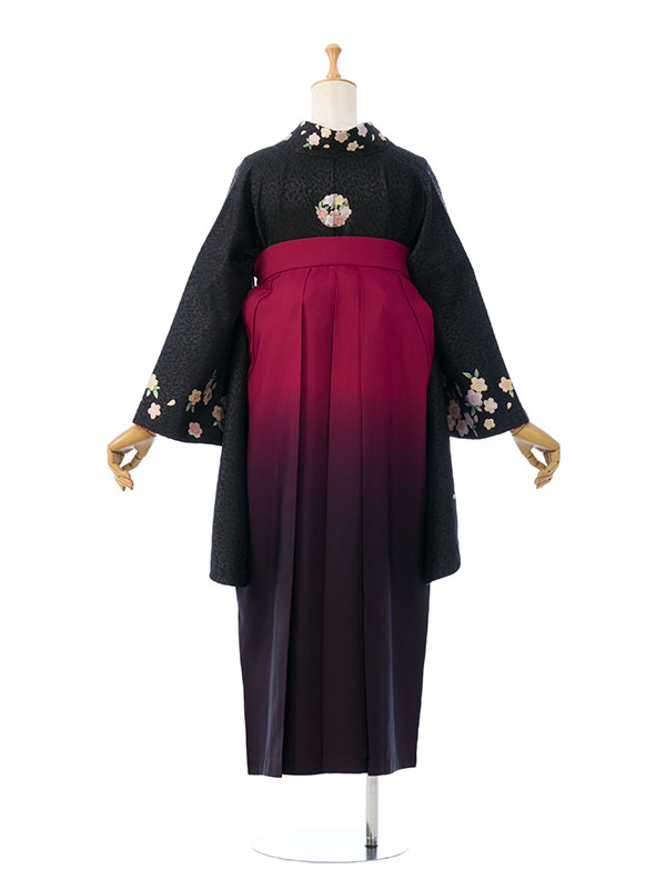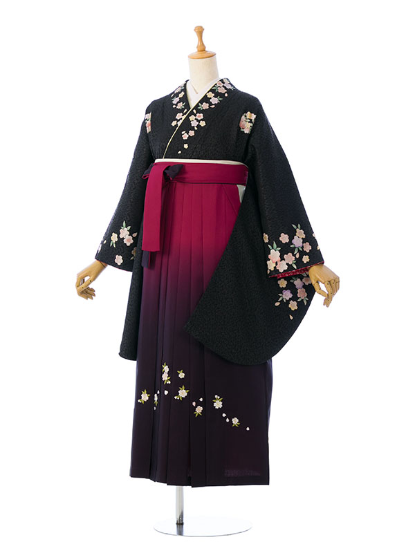 卒業袴|黒系|花紋|R1012|対応身長:153-158cm|サイズ:7-13号