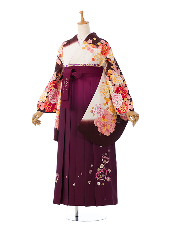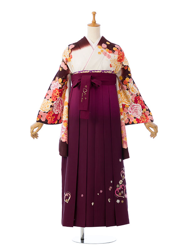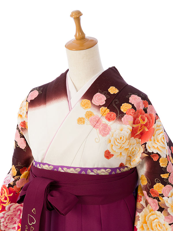 卒業袴|白系|薔薇|8R1193|対応身長:158-163cm|サイズ:17-23号