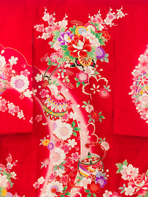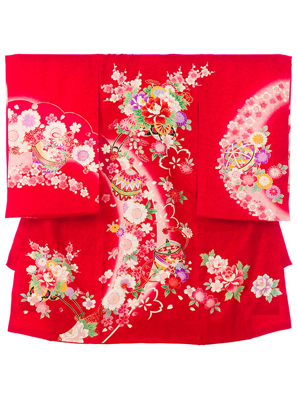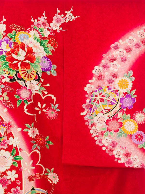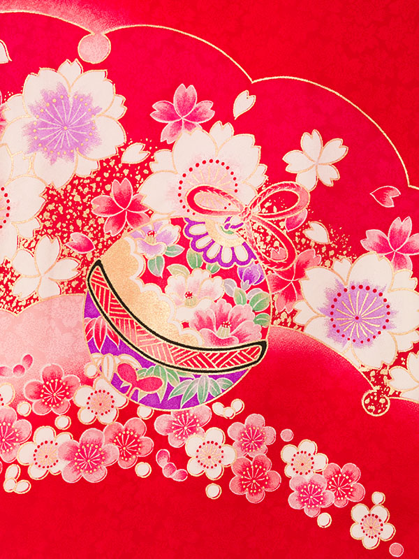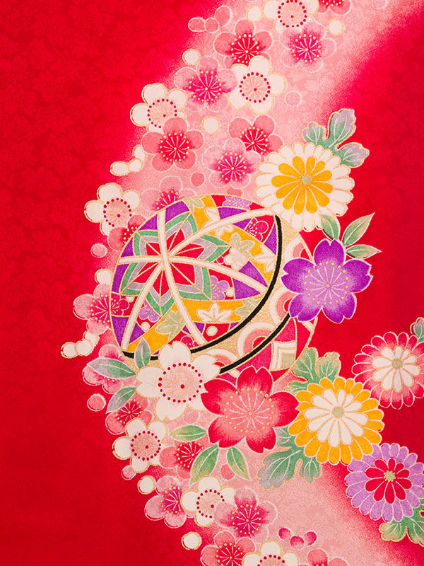■色/柄  赤地 花車と鞠