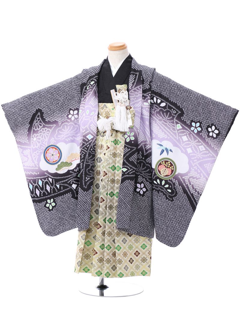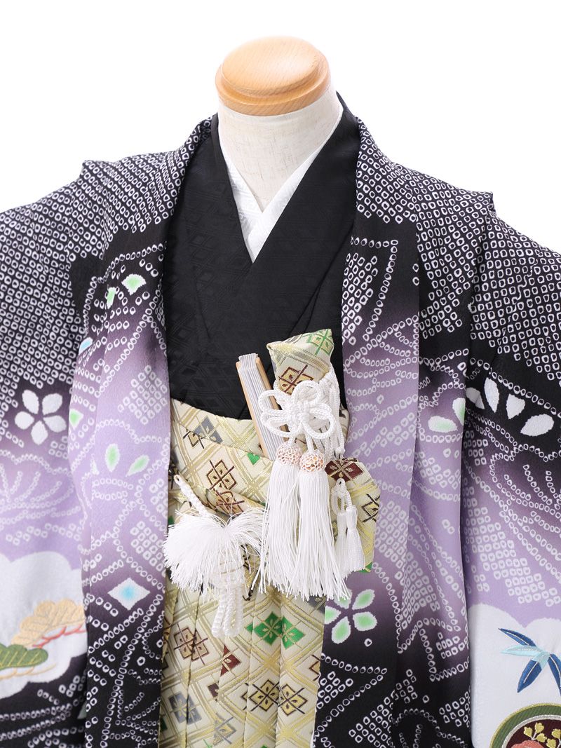 羽織:黒×紫地 鹿の子絞り調 小槌 松竹梅