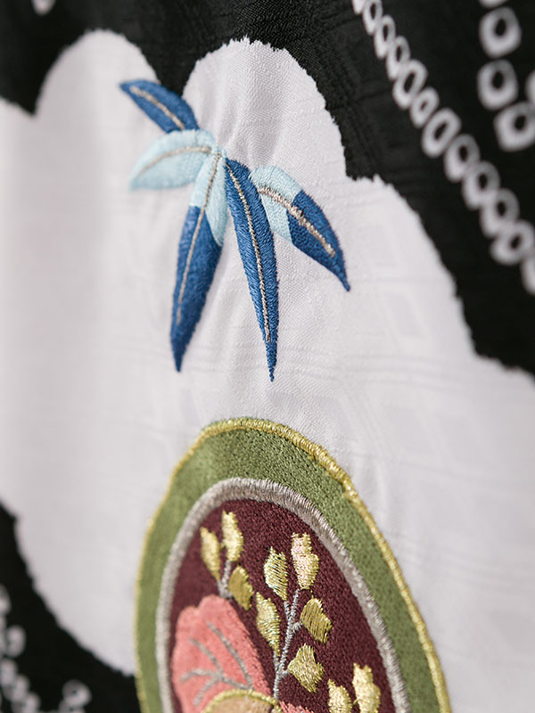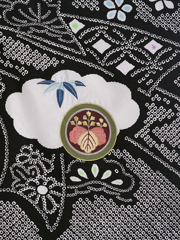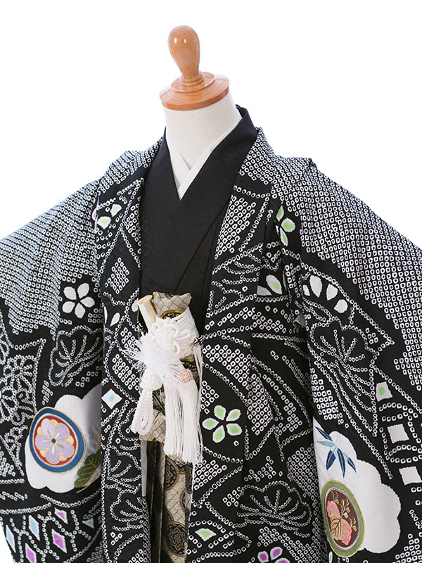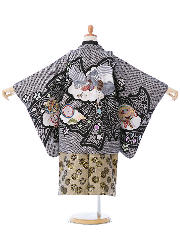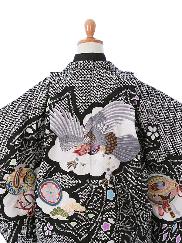 羽織:黒地 疋田絞り調 飛翔鷹と束ね熨斗 打出の小槌