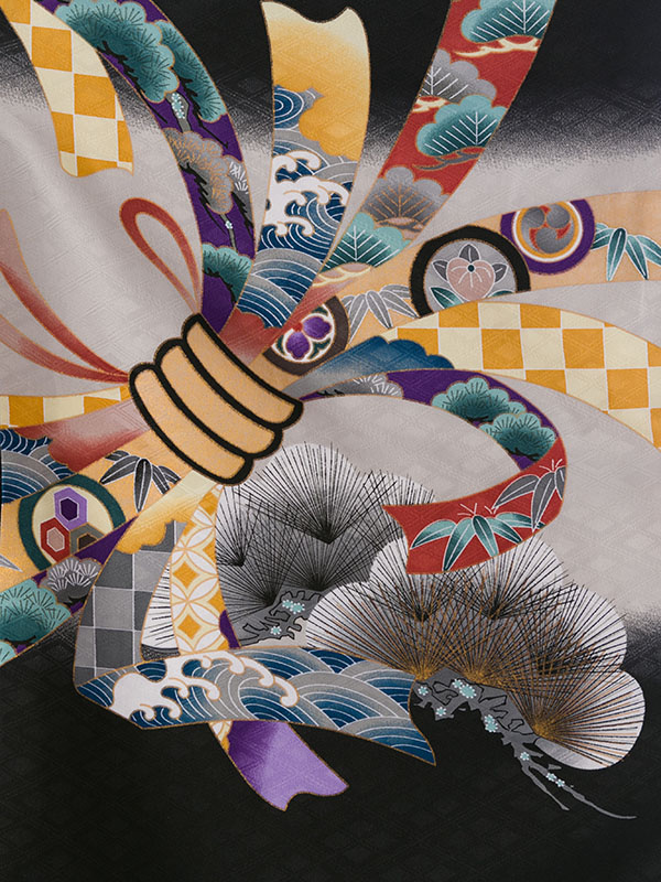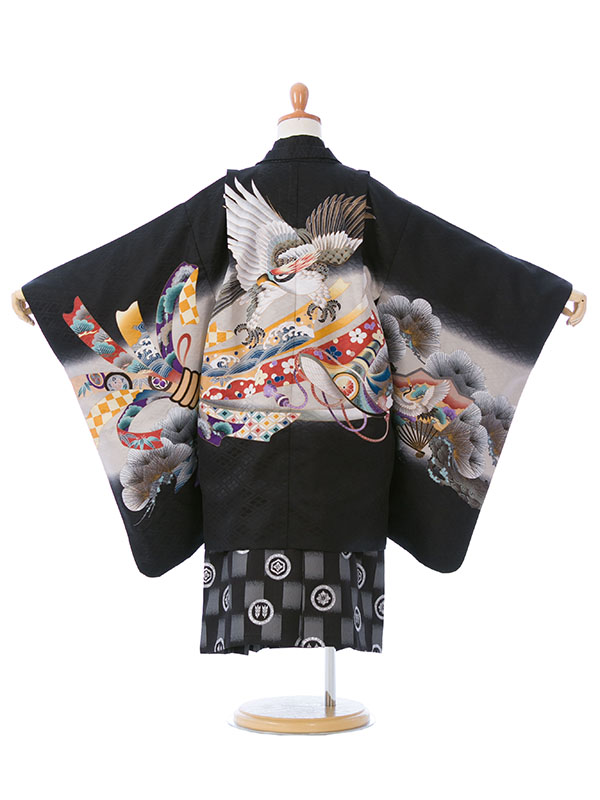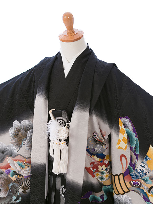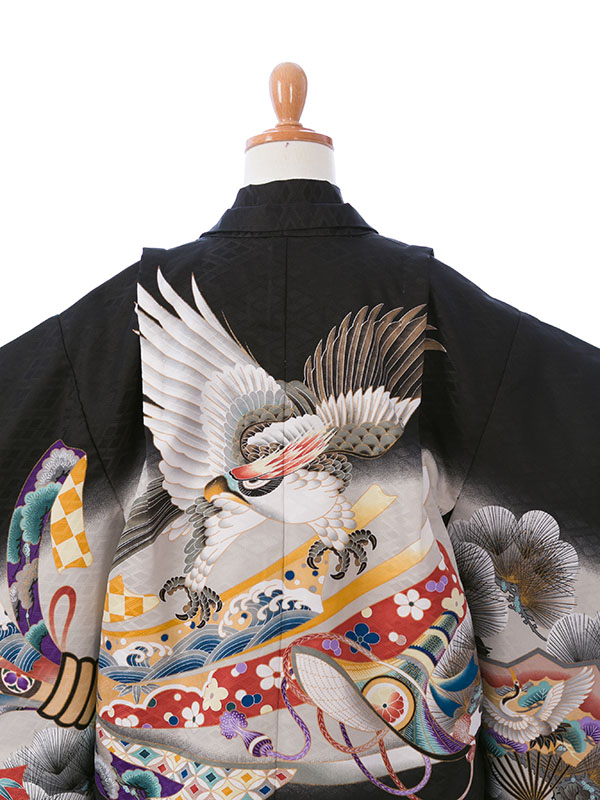羽織:黒地 グレーぼかし 鷹に束ね熨斗