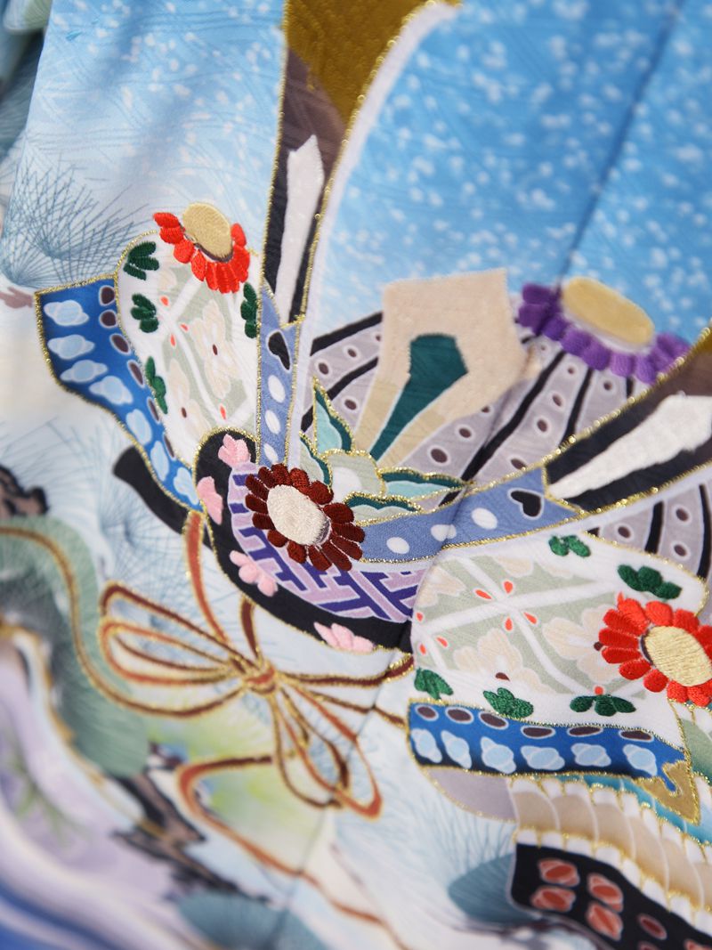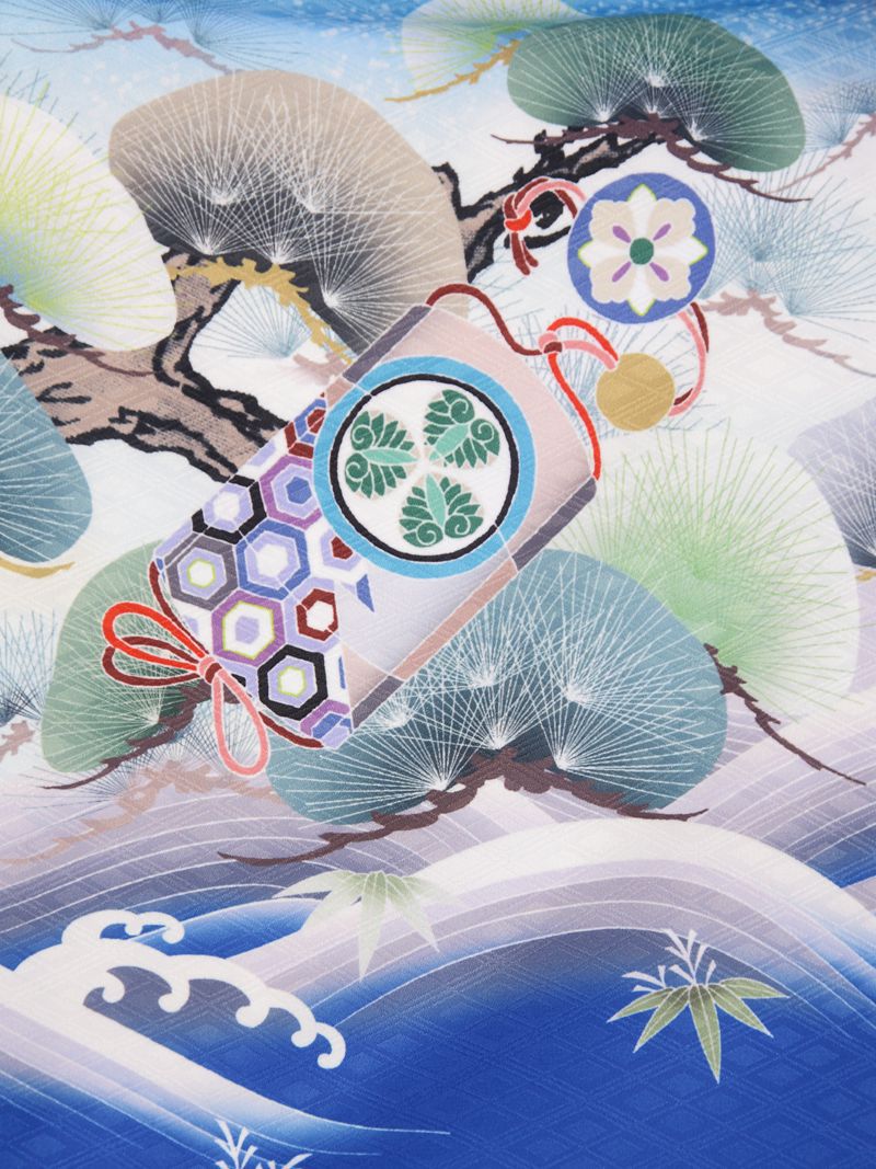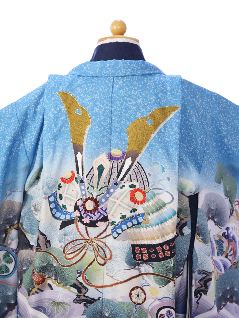 羽織:水色たたき染地 兜 松 波