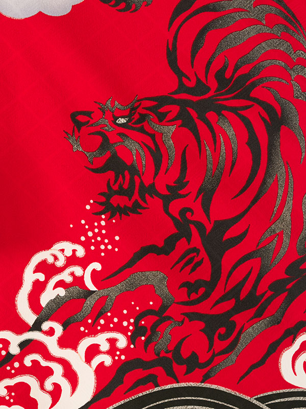 ■羽織:赤 龍虎■着物:グレー