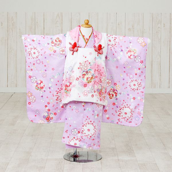 着物/被布/刺繍又は無地半襟付袖なし襦袢/腰ひも(2本)/巾着/草履/髪飾り/足袋ソックスまたはストレッチ足袋(プレゼント)/簡単着せ方マニュアル