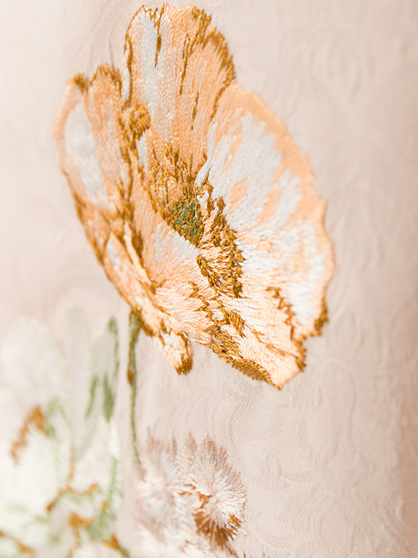 ※草履、巾着、髪飾り、胸飾り、刺繍又は無地半襟付袖なし襦袢はe-きものレンタルにてコーディネートさせていただきます。