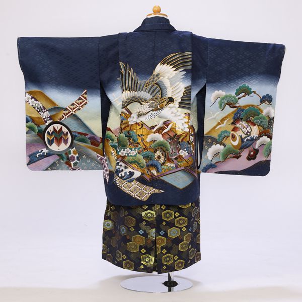 羽織:紺地 鷹 屏風 松竹 吉祥柄