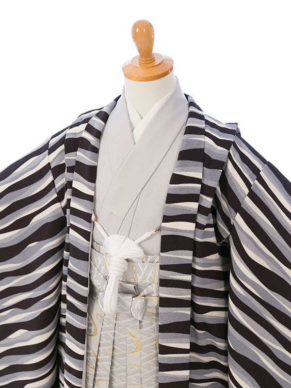 羽織地:黒×グレー地 横段
