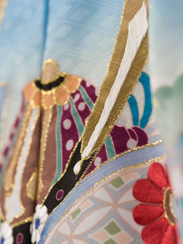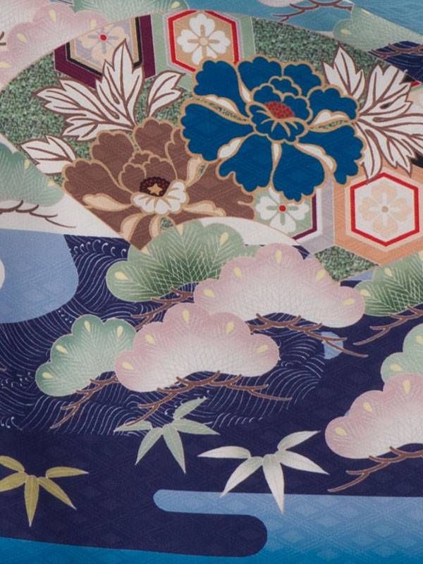 羽織:水色地 兜 松竹 花 扇面