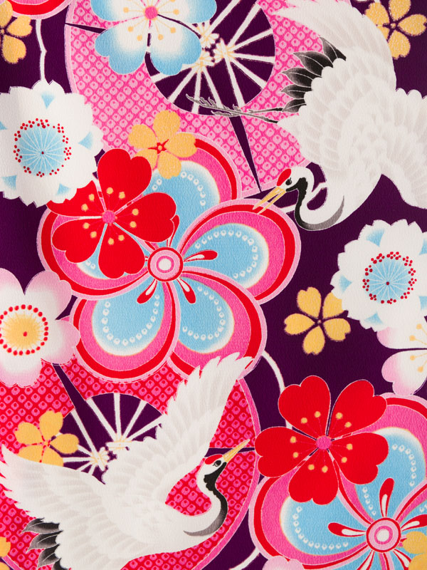 着物:紫地 鶴にねじり梅