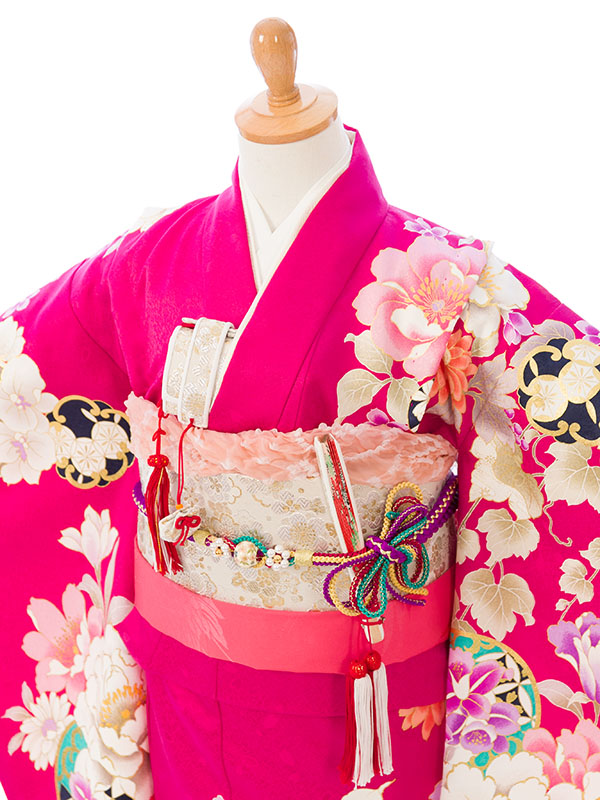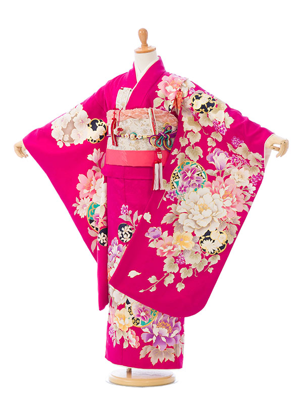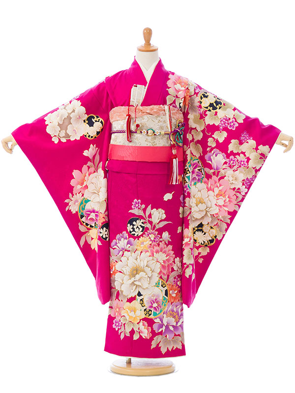 濃ピンク 牡丹に桜 葡萄文様 花丸