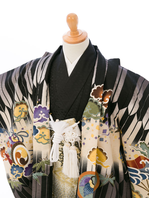 3歳男|陽気な天使|95~105cm|七五三着物(黒系)|男の子(三歳)