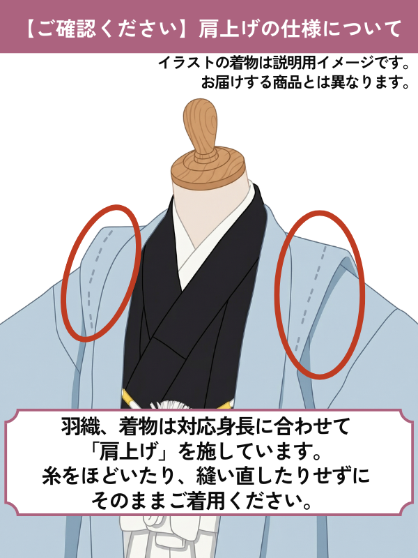 気をつけの姿勢で、腕をまっすぐ45度に開き、首のつけ根の後ろの中心から肩の頂点を通って手首のくるぶしが隠れるところまでの長さです。