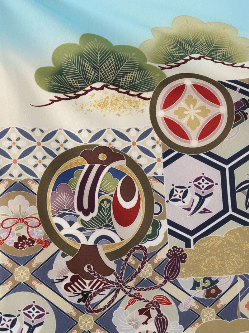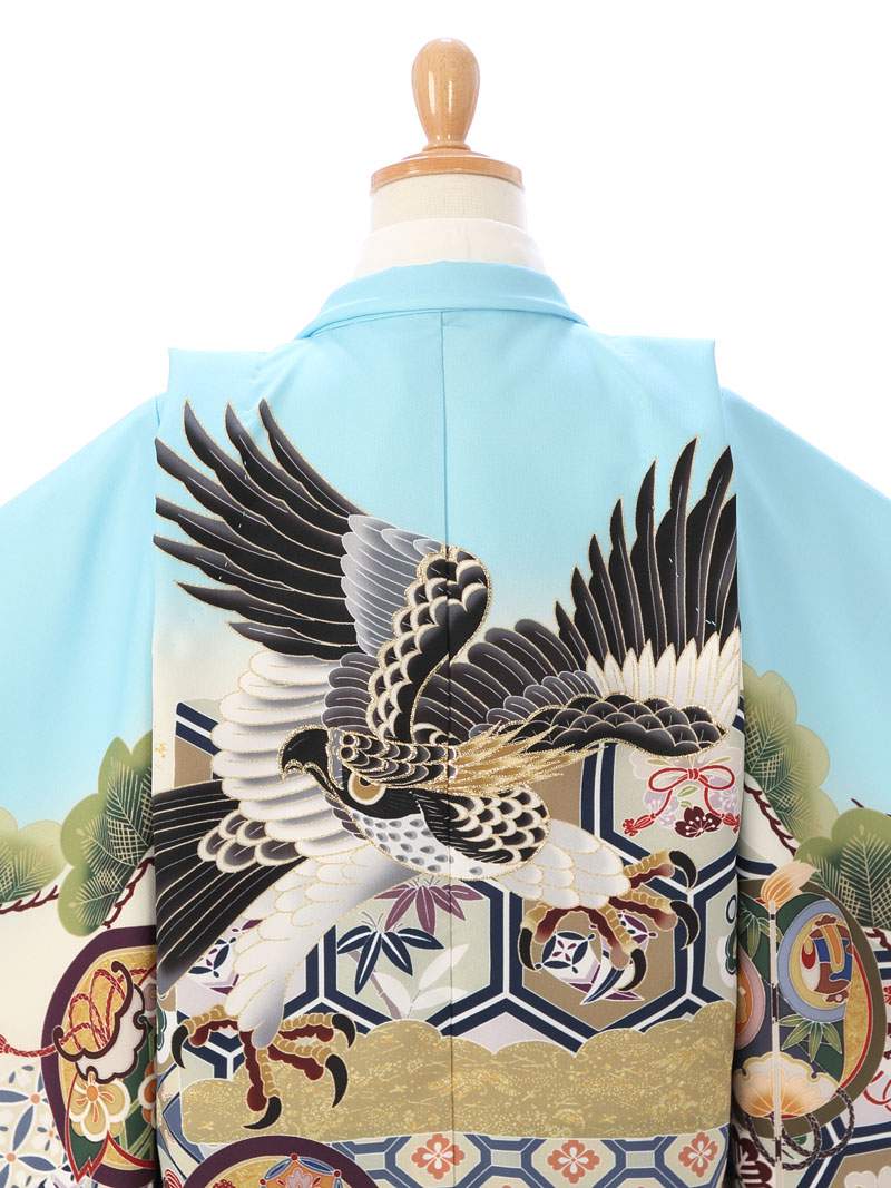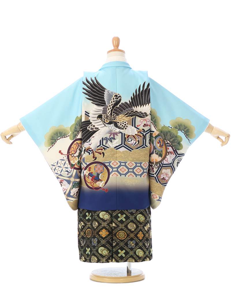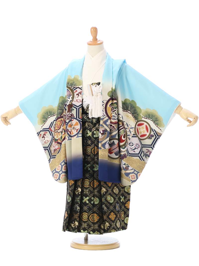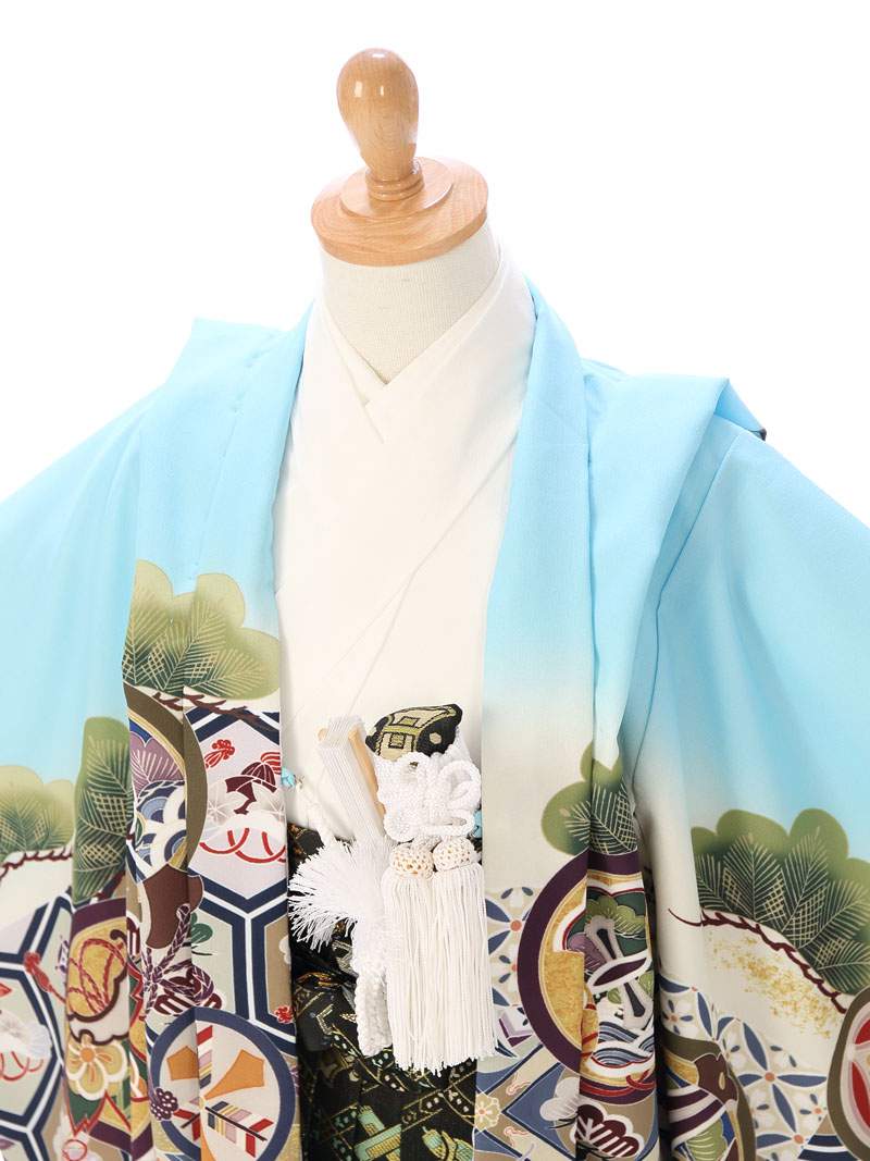 羽織:水色 龍兜に亀甲 丸に縁起物