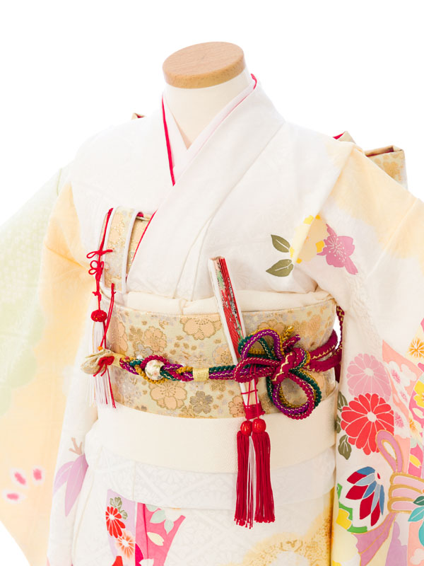※帯、草履、バック、刺繍又は無地半襟付袖なし襦袢、帯揚げ、帯締め、はこせこ、髪飾りは お着物に合わせてe-きものレンタルにてコーディネートさせていただきます。(着物の幅は、やせ型から標準体型の物になります。)