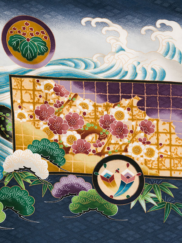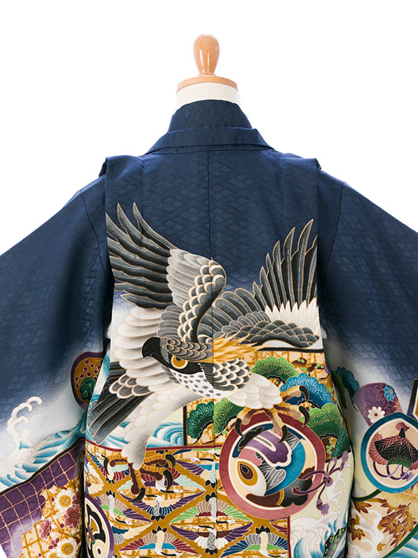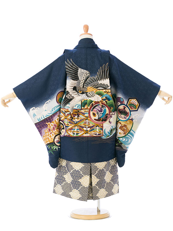 羽織:紺地 飛翔鷹 松波 向かい鶴菱