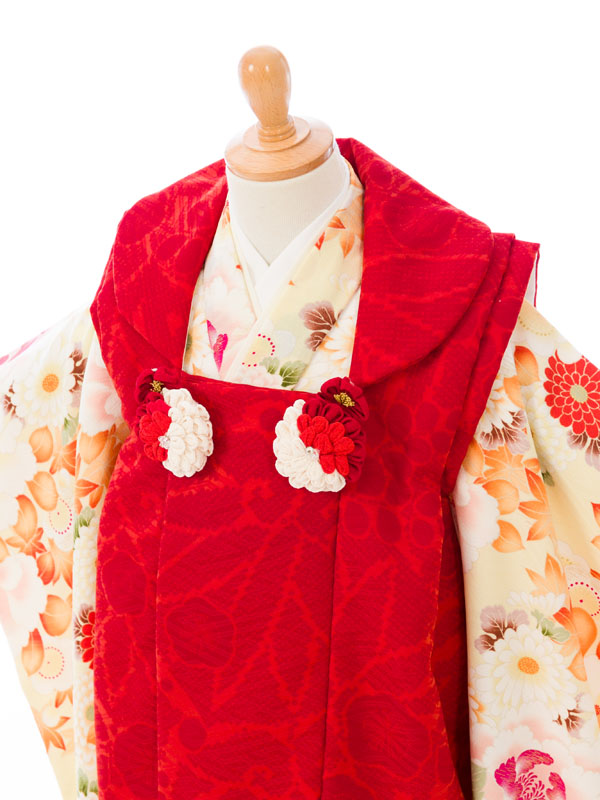※草履、巾着、髪飾り、胸飾り、刺繍又は無地半襟付袖なし襦袢はe-きものレンタルにてコーディネートさせていただきます。