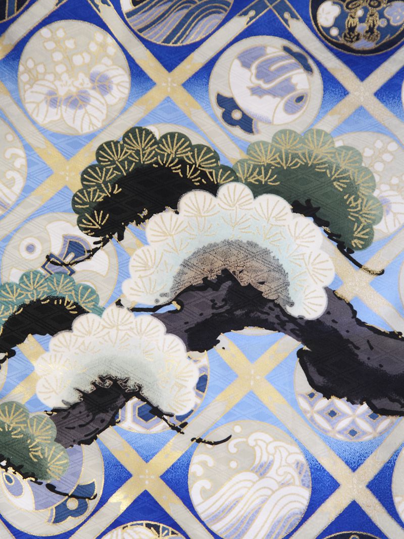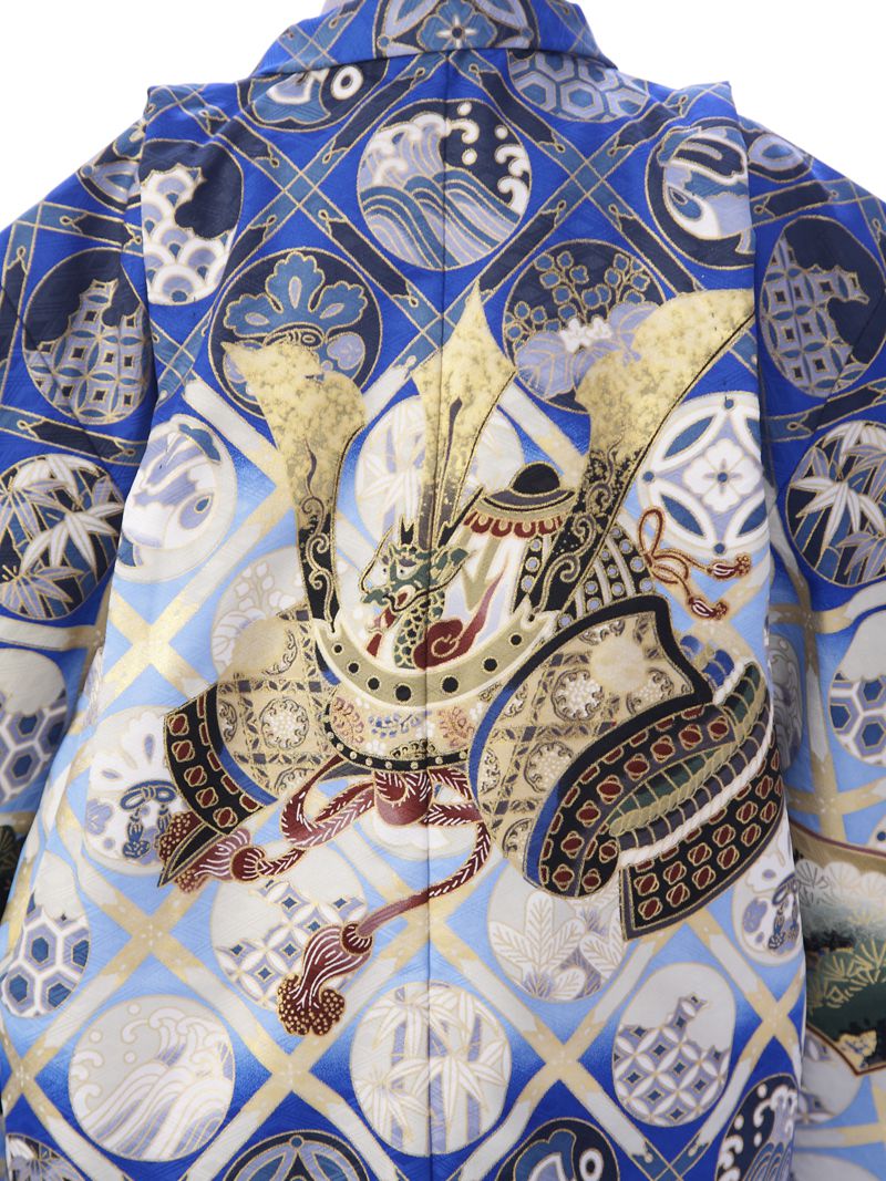 羽織:ブルー濃淡 格天井 龍兜 丸に縁起物