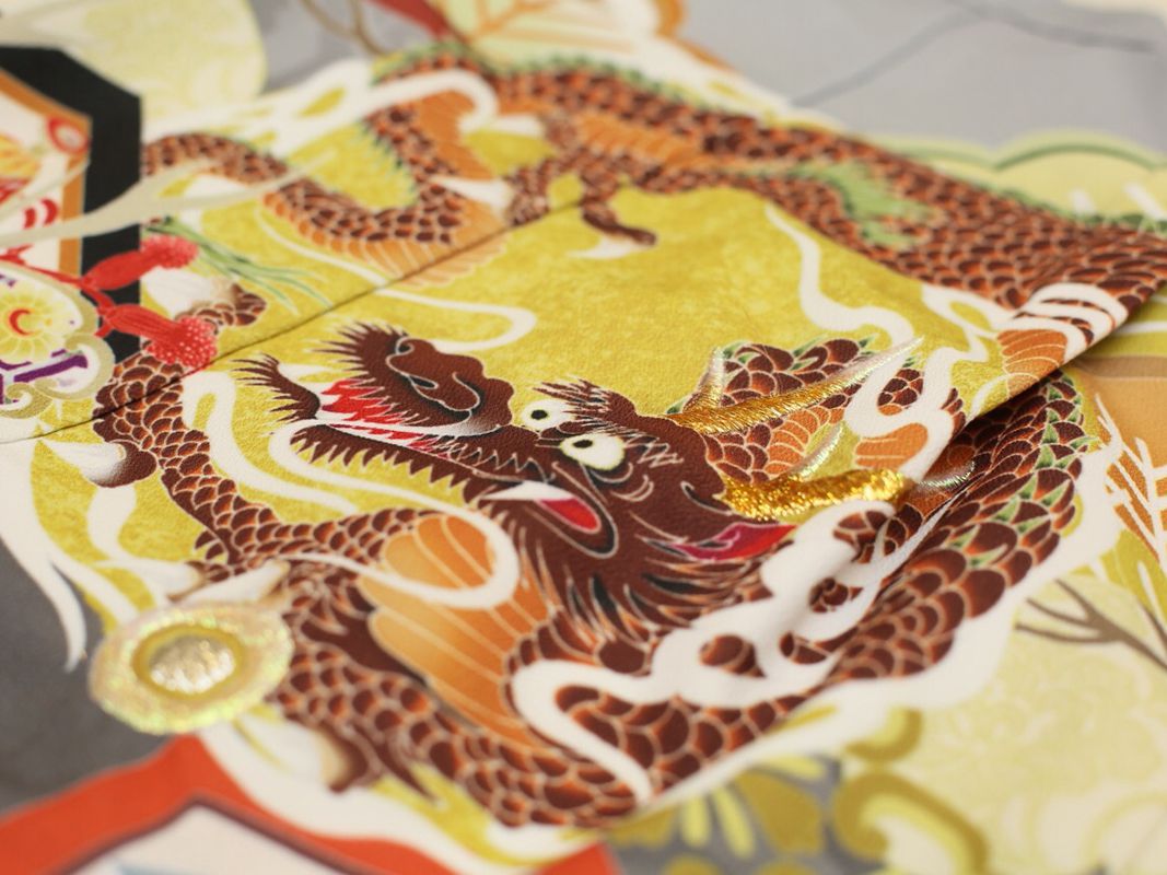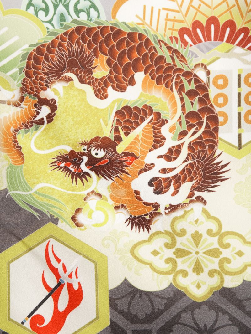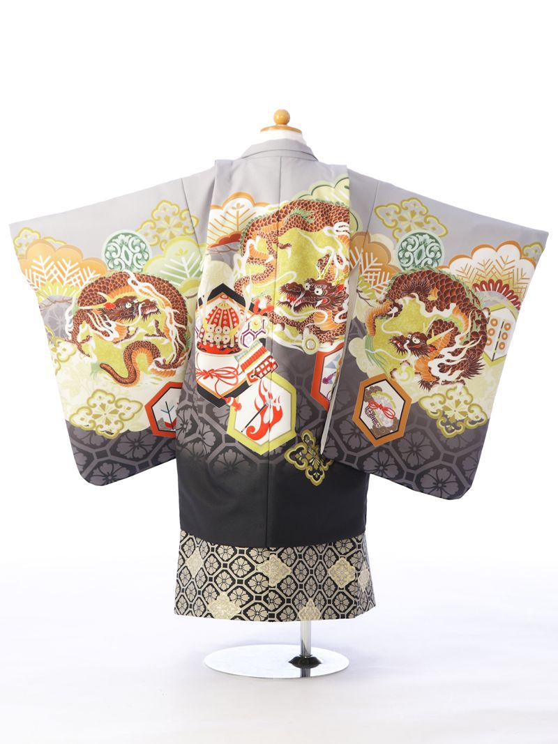 羽織:グレー×黒 龍と兜 吉祥文様