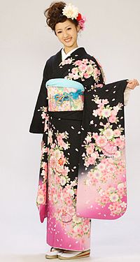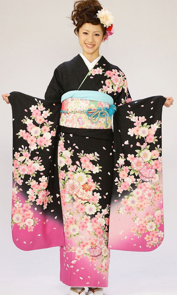振袖|黒系|桜 |5S760|対応身長:153-163cm|サイズ:7号-13号