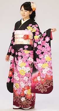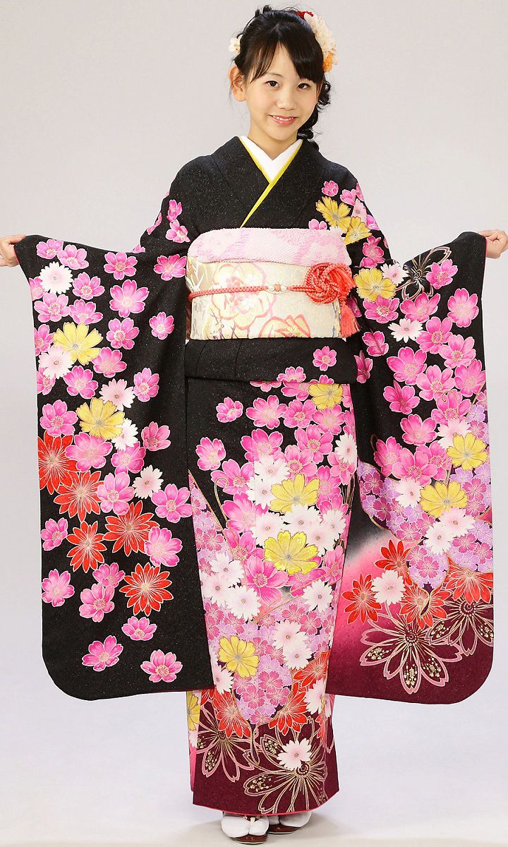 振袖|黒系|桜 |6S412|対応身長:160-170cm|サイズ:7号-13号