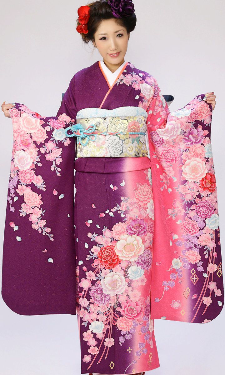 振袖|紫系|桜 牡丹 |6S623|対応身長:153-163cm|サイズ:7号-13号