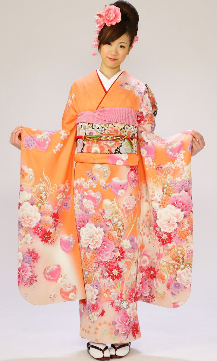振袖|オレンジ系| 牡丹 |6S711|対応身長:148-158cm|サイズ:7号-13号