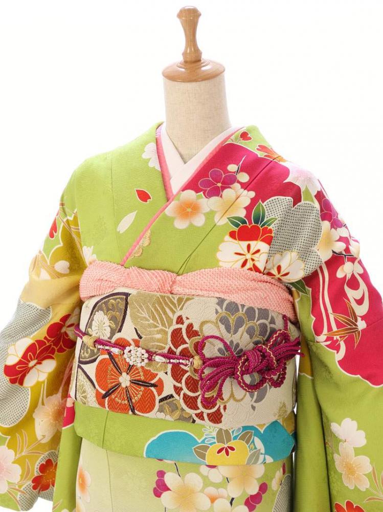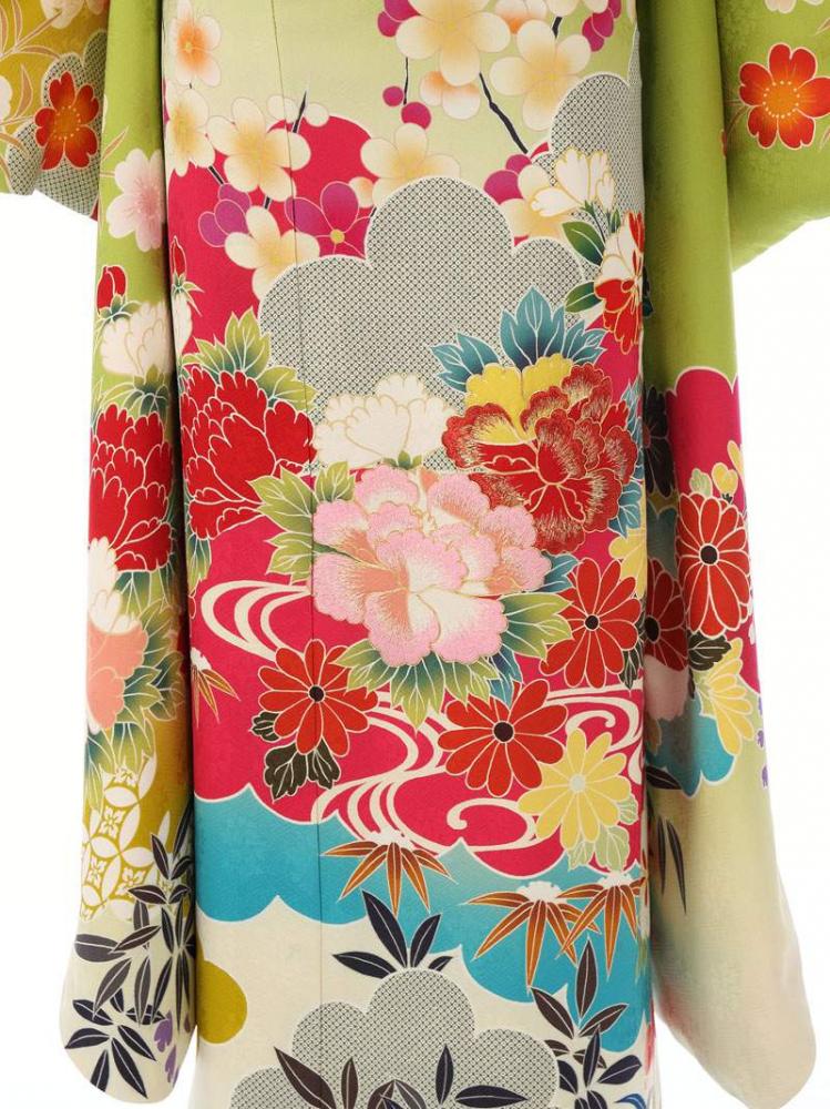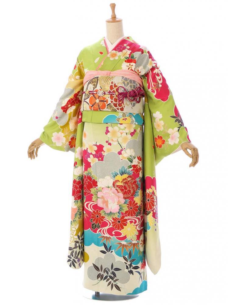 振袖|緑系| 牡丹 |8S246|対応身長:158-168cm|サイズ:21号-29号